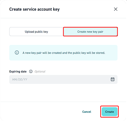 - Klicken Sie auf Service Account Schlüssel erstellen.