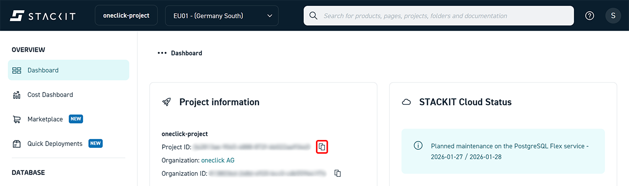- Öffnen Sie das Projekt im StackIT-Portal.