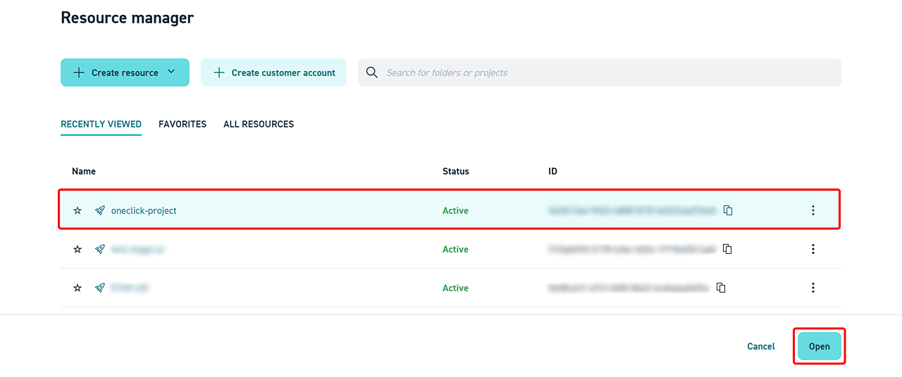 - Klicken Sie auf das neu erstellte Projekt und anschließend auf Öffnen.