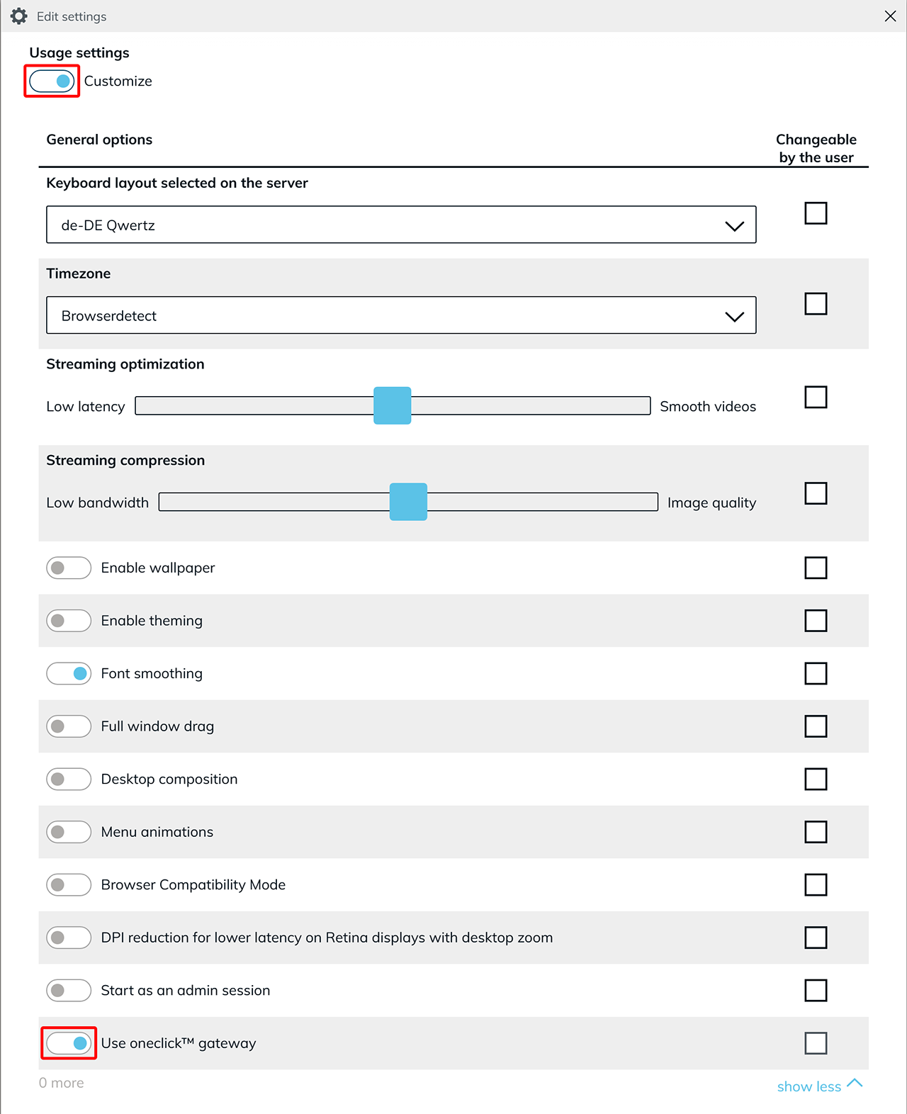 Neben dem bewährten oneclick™ Streaming im Browser bieten wir ab sofort auch die Möglichkeit, das oneclick™ Gateway zu nutzen. Damit können Ihre Benutzer unter Windows die integrierte Remotedesktopverbindung und unter Mac oder Linux die App Remote Desktop Manager verwenden, um auf Remote-Zielsysteme zuzugreifen.