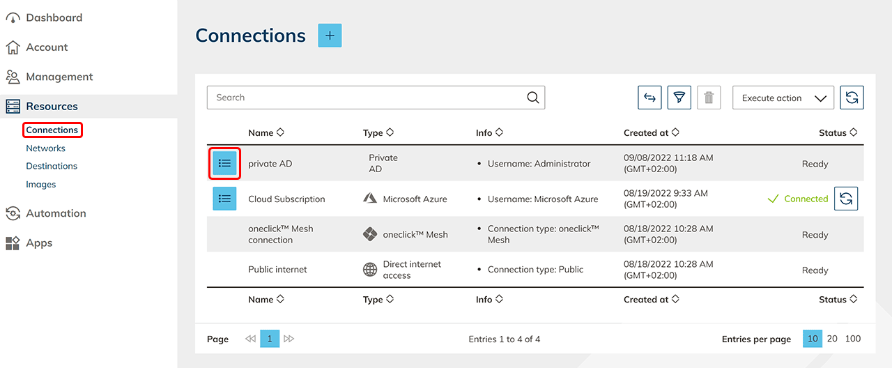 - Gehen Sie in der Zeile Ihres Active Directorys auf das Listen-Symbol, um auf die Detailansicht zu gelangen.