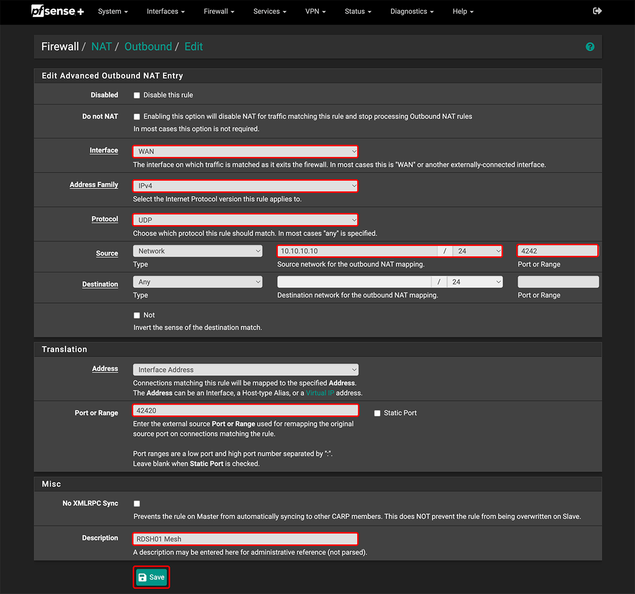 - Zur Übersichtlichkeit können Sie erneut die gleiche Beschreibung verwenden wie unter „Mapping“, z.B. RDSH01 Mesh.
