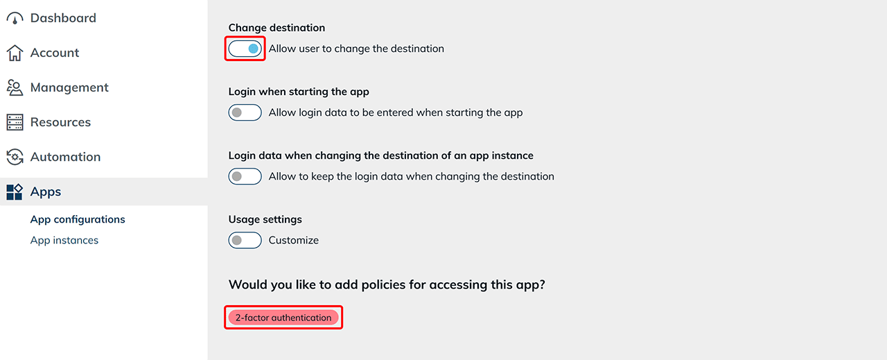 - Die Option „Ändern des Zielsystems durch den Benutzer erlauben“ ist standardmäßig aktiviert. Wenn Sie nicht möchten, dass Ihre Benutzer das Zielsystem selbstständig ändern, deaktivieren Sie den entsprechenden Schiebeschalter. Falls Sie sich nicht sicher sind, können Sie die Berechtigung auch nachträglich einschränken.