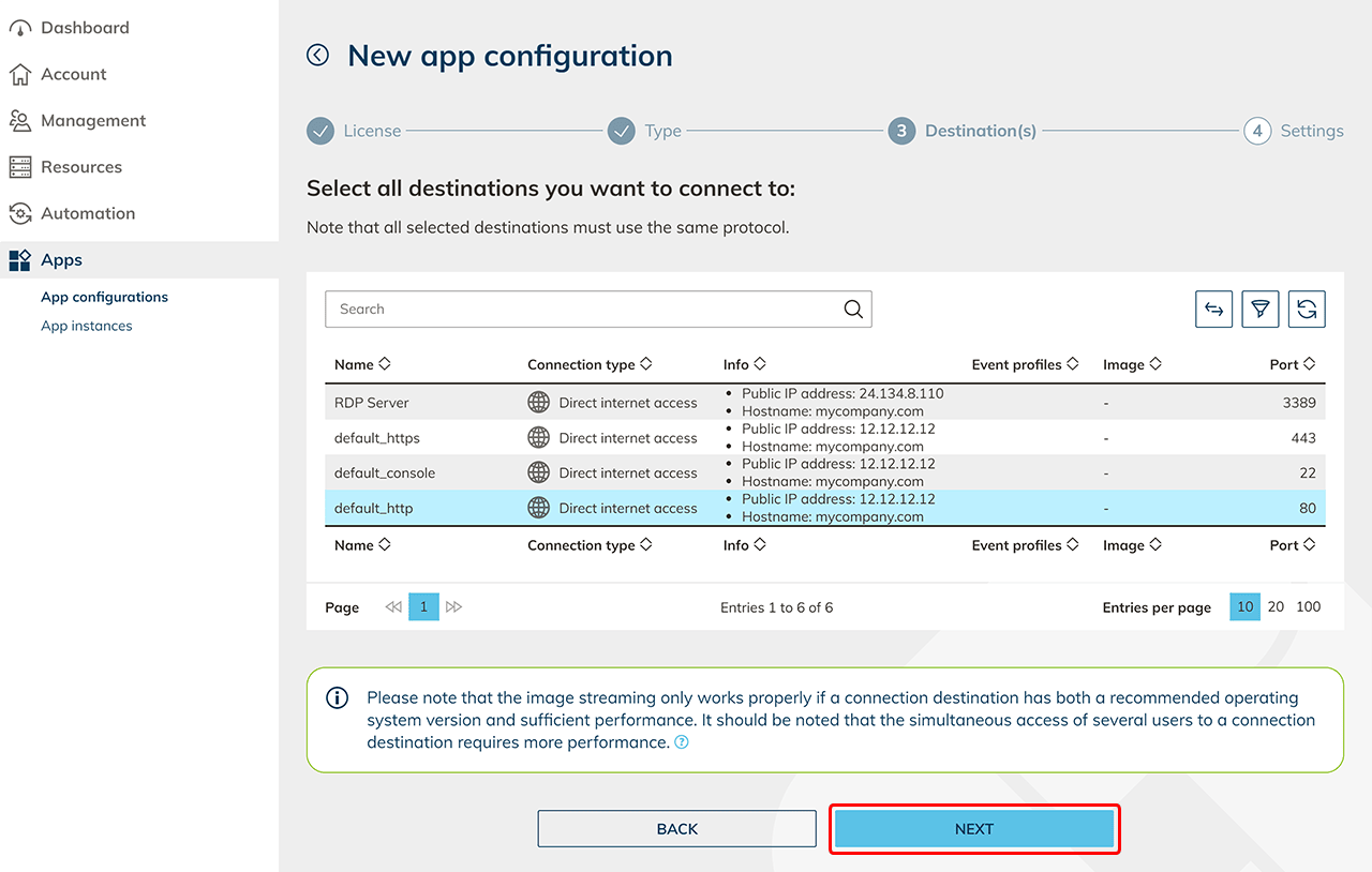 - Im nächsten Schritt können Sie den passenden Konfigurationstyp (interne Website / App) für den Zugriff auf Ihre Ressourcen wählen.