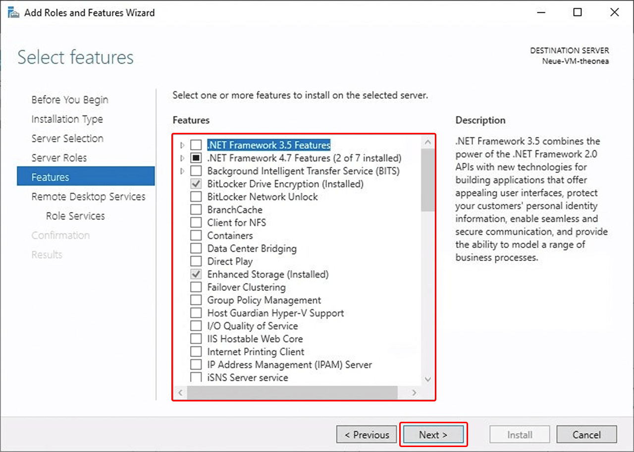 - Wählen Sie bei Bedarf "Features" aus und klicken Sie auf Weiter.