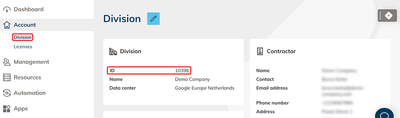 - In der Kachel "Verwaltungseinheit" befindet sich die ID, diese entspricht Ihrer oneclick™ Kundennummer.