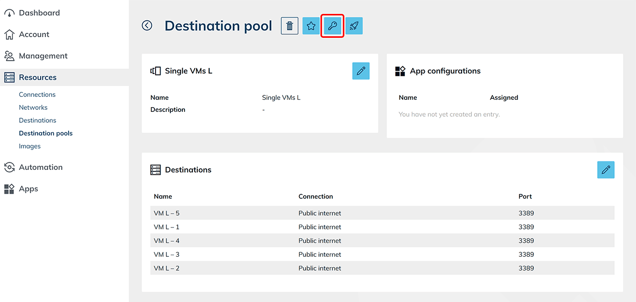 - Im Reiter Ressourcen gehen Sie auf Zielsystem-Pools und klicken dann auf das Listen-Symbol, um zur Detailseite zu gelangen.