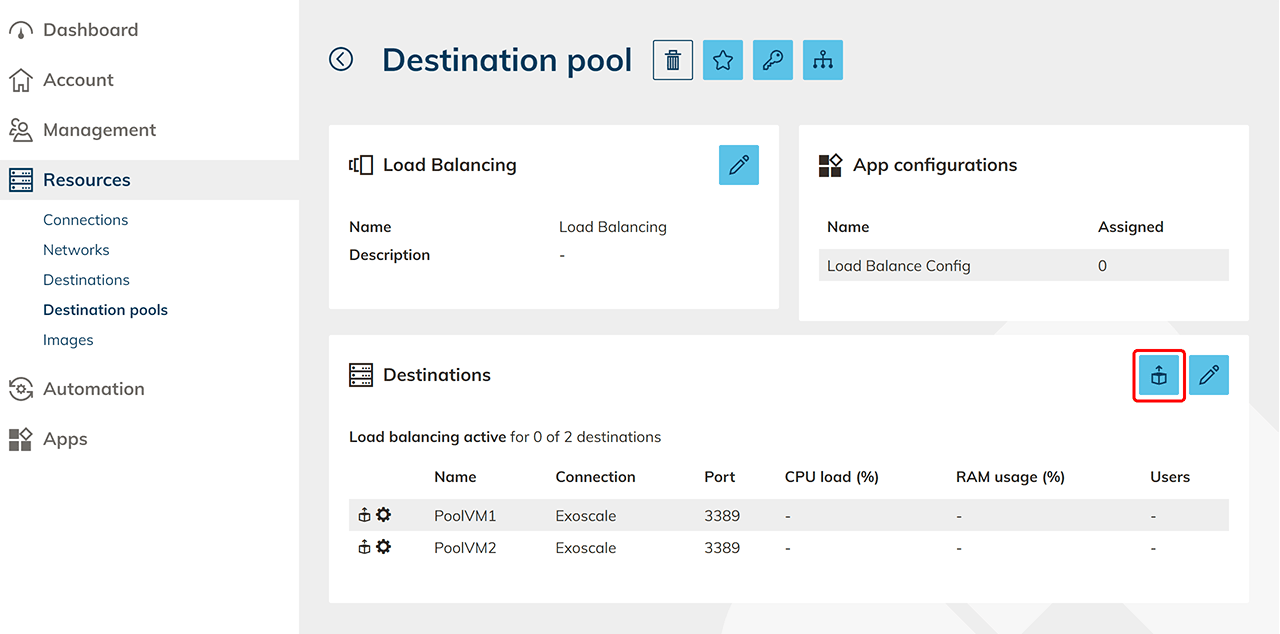 Sobald sie Load Balancing aktiviert haben wird in oneclick™ automatisch ein neuer Prozess angelegt, welcher den Windows Exporter aktiviert. Sollte das Initialisieren des Load Balancings fehlgeschlagen sein, erscheint in der Auflistung der Zielsysteme jeweils ein Box-Symbol links neben dem Zielsystemnamen.