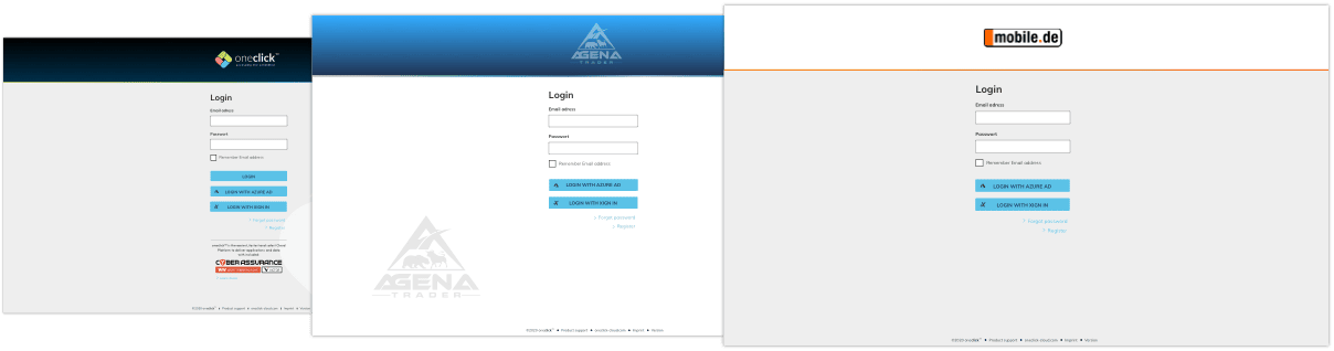 Sie erhalten von uns eine URL, über die Sie das White Label aufrufen können. Diese wird immer mit Ihrer Firmenseite gebildet, wenn Sie es nicht anders wünschen, und etwa folgendermaßen aussehen: oneclick.services?referrer=yourcompany.com. Der sogenannte “Referrer” ist der Ihrer Firmenwebsite. Sollten Sie irgendwann von Ihrer Website aus auf den oneclick™ Login mit Ihrem White Label verlinken wollen, erkennt oneclick™ Ihre Website und ruft Ihr Whitelabel auf.