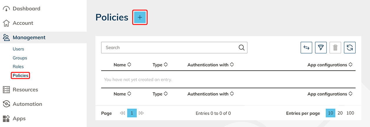 Klicken Sie auf das + Symbol, um eine neue Richtlinie zu erstellen.