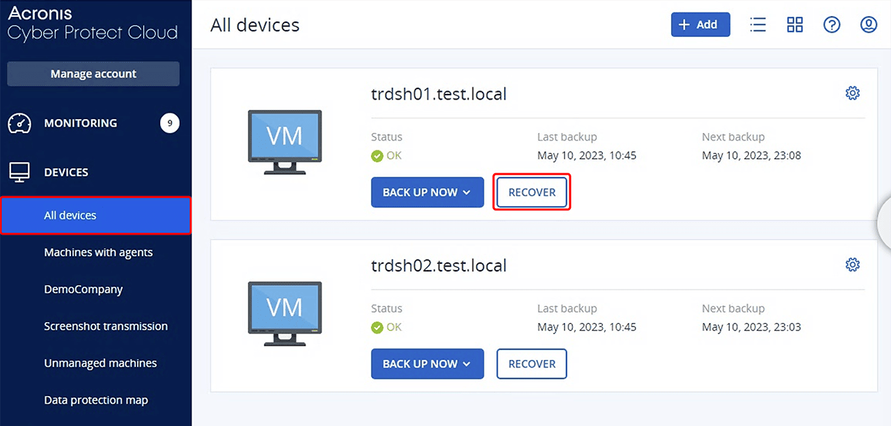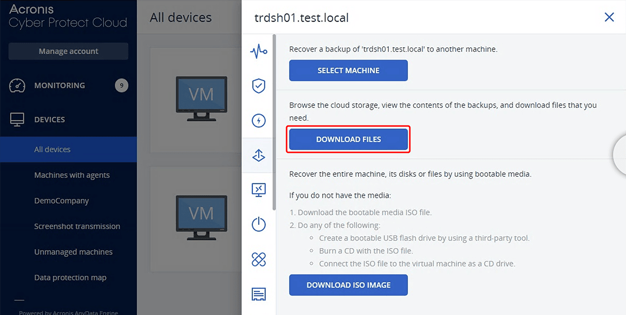 Melden Sie sich unter https://eu5-cloud.Acronis.com/login an.