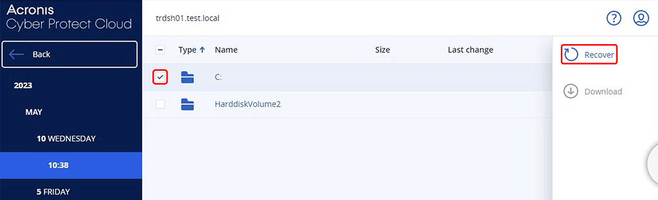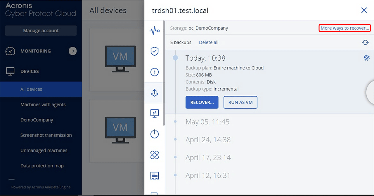 Wählen Sie den gewünschten Server, den Sie wiederherstellen möchten und klicken Sie auf Recover.