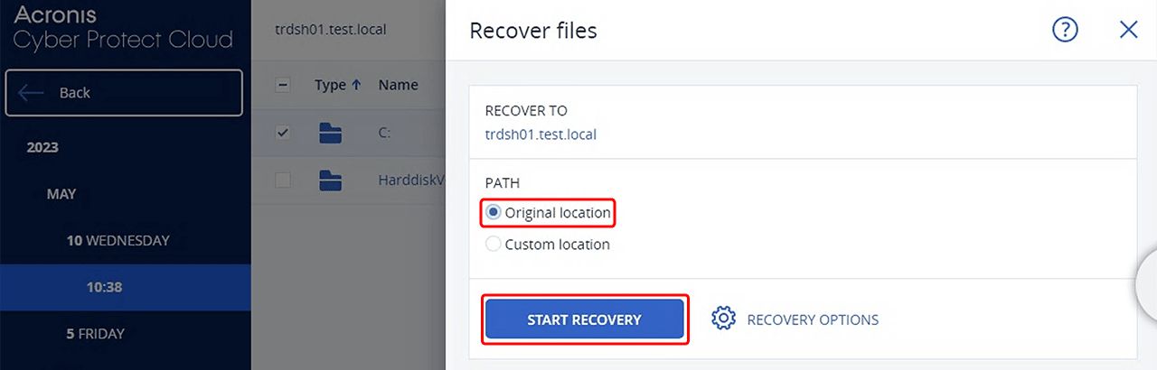 Klicken Sie Ursprünglicher Speicherort und dann auf Recovery starten.