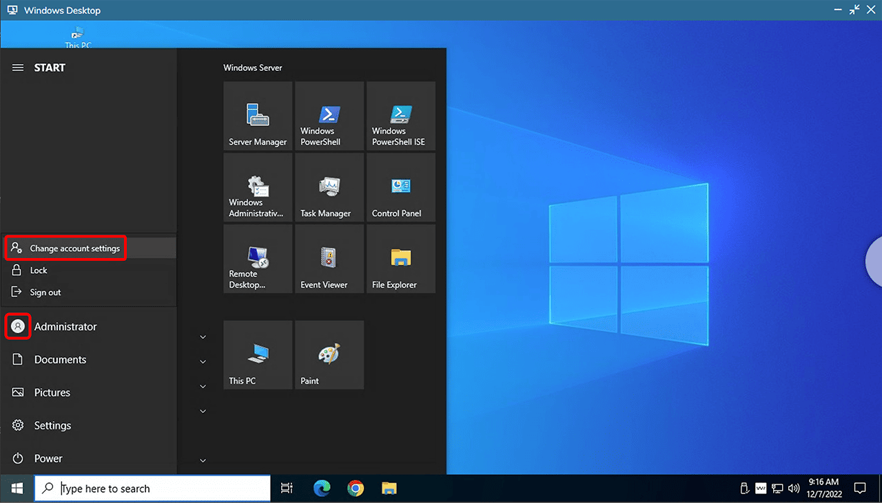 Öffnen Sie das Startmenü, gehen mit der rechten Maustaste auf das Männchen-Symbol und klicken Sie dann auf Kontoeinstellungen ändern.