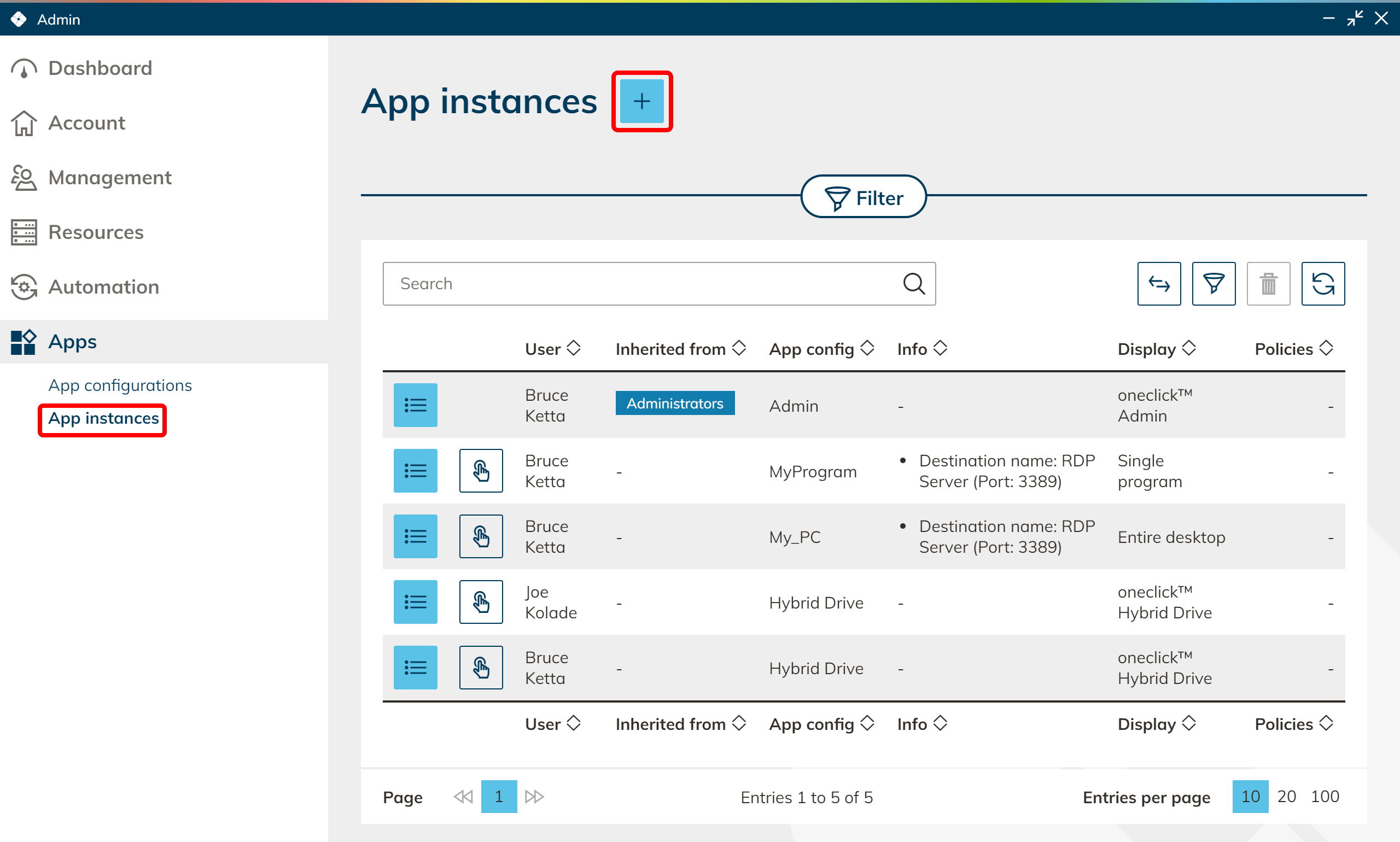 - Durch Klick auf das**+ Symbol** erstellen Sie eine neue App-Instanz.