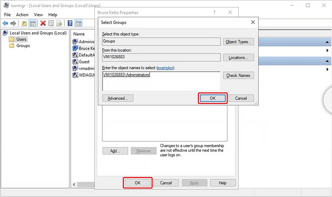 Der angelegte Benutzer hat keine administrativen Berechtigungen. Wenn Sie den neu angelegten Benutzer administrative Berechtigungen auf der virtuellen Maschine geben möchten, gehen Sie wie folgt vor: