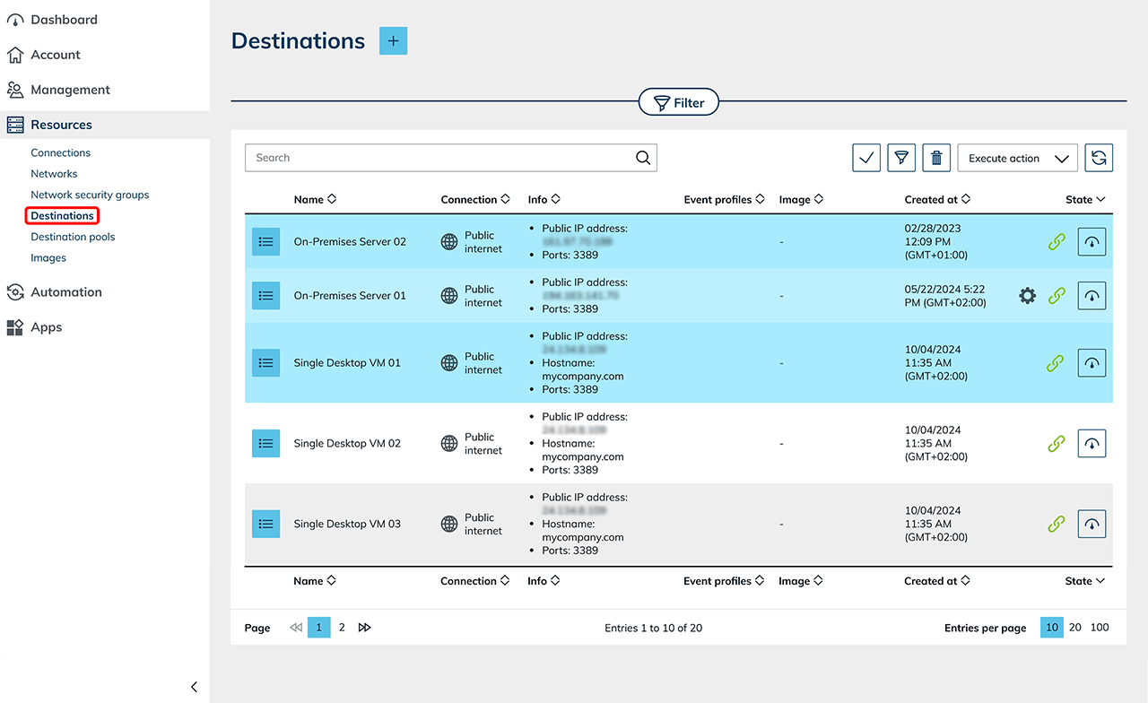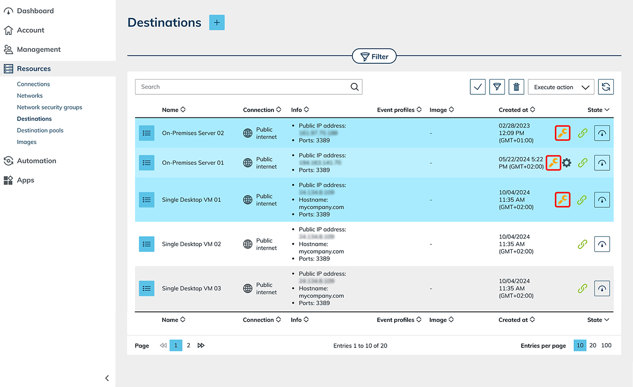 - Gehen Sie erneut zu Ressourcen und dann Zielsysteme. Zielsysteme im Wartungsmodus sind durch ein Schraubenschlüssel-Symbol gekennzeichnet.
