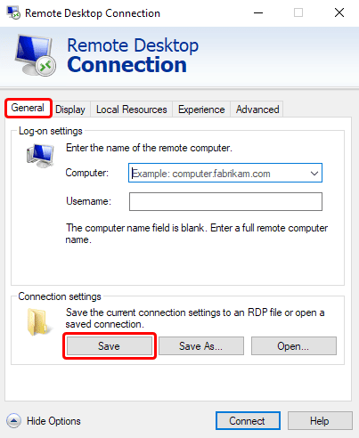 Falls Sie diese Option deaktivieren, stellen Sie sicher, dass der Anzeigeregler ganz rechts auf „Vollbild“ steht. Andernfalls startet die Sitzung nur in einem kleinen Fenster. - Wechseln Sie anschließend zur Registerkarte „Allgemein“ und klicken Sie auf Speichern, um die Änderungen dauerhaft zu übernehmen.