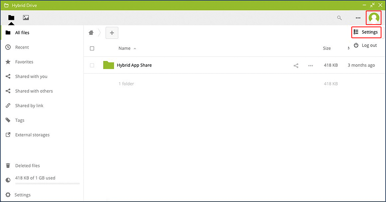 - Gehen Sie in Ihrem Hybrid Drive auf Einstellungen.