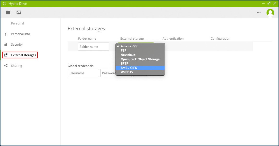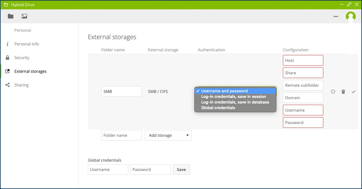 - Im nächsten Schritt können Sie wählen, welche Authentifizierungsart Ihr Speicher benötigt. Geben Sie Ihre Daten ein. Anschließen wird Ihr Speicher verbunden. Achten Sie darauf, dass Ihre Firewall den Zugriff erlaubt.