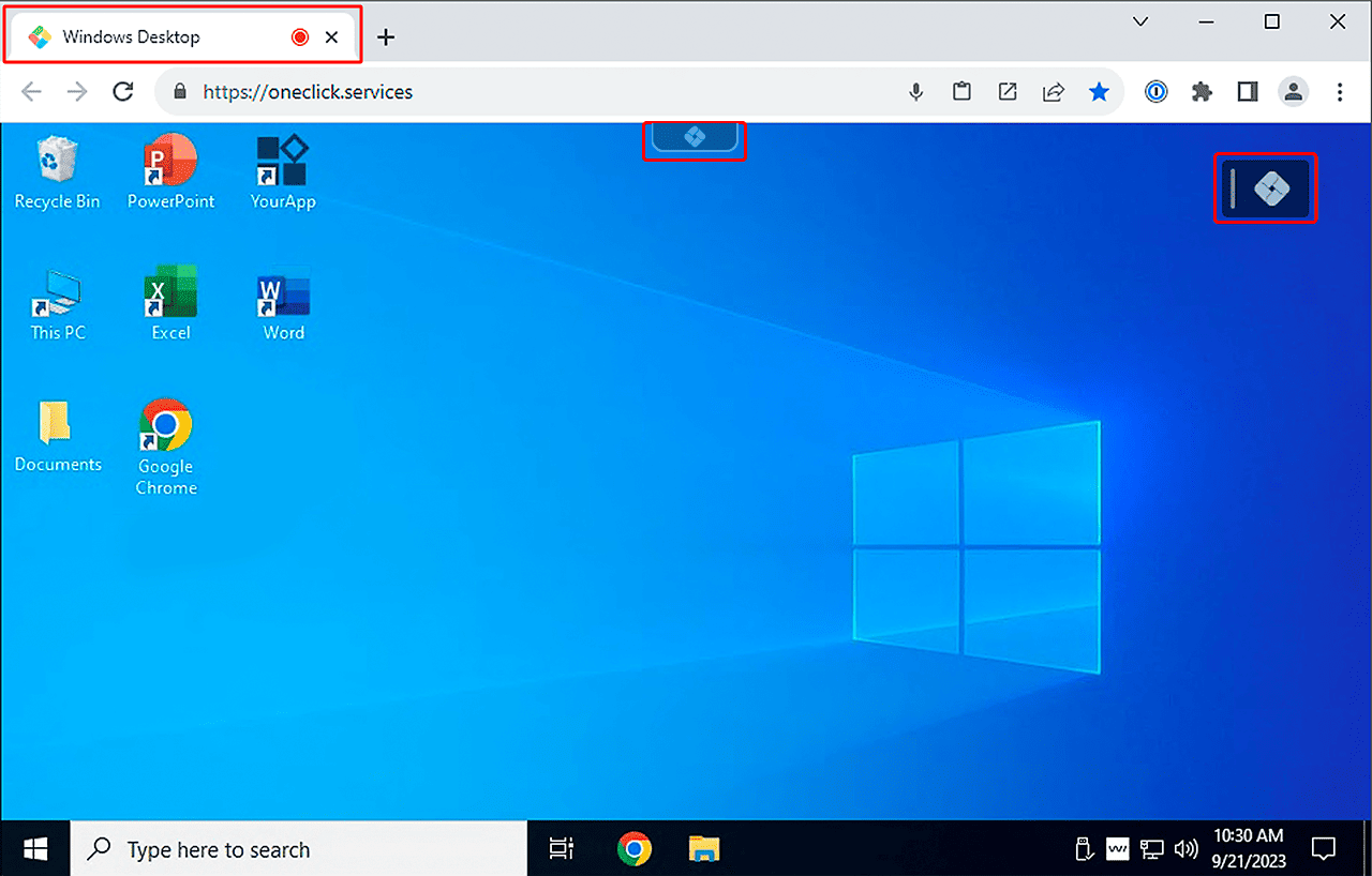 Sie sehen entweder den oneclick™ Unified Workspace oder die geöffnete App (Ihren Remote Desktop oder Ihre Applikation) in Ihrem Browser, nachdem Sie sich bei oneclick.services angemeldet haben.