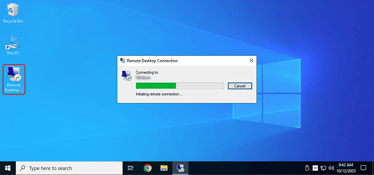 - Wenn Sie das „Remotedesktopverbindung“-Symbol auf Ihrem Desktop finden, machen Sie einen Doppelklick, um die Remotedesktopverbindung zu starten.