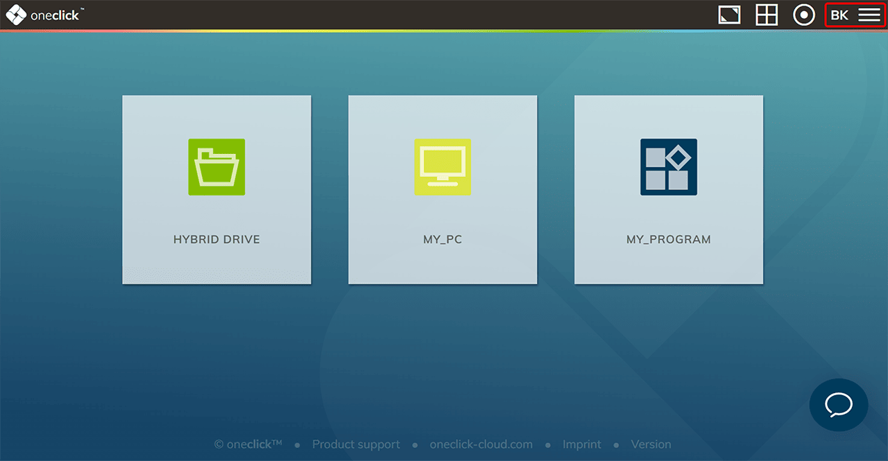 - Durch Klick darauf, gelangen Sie zum oneclick™ Menü.