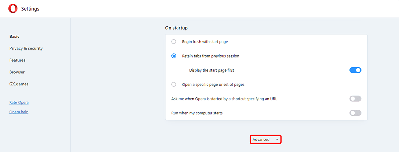 Deaktivieren des Sparmodus in Opera