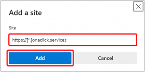 - Geben Sie hier also https://[*.]oneclick.services ein und bestätigen Sie Ihrem Eintrag mit Hinzufügen.