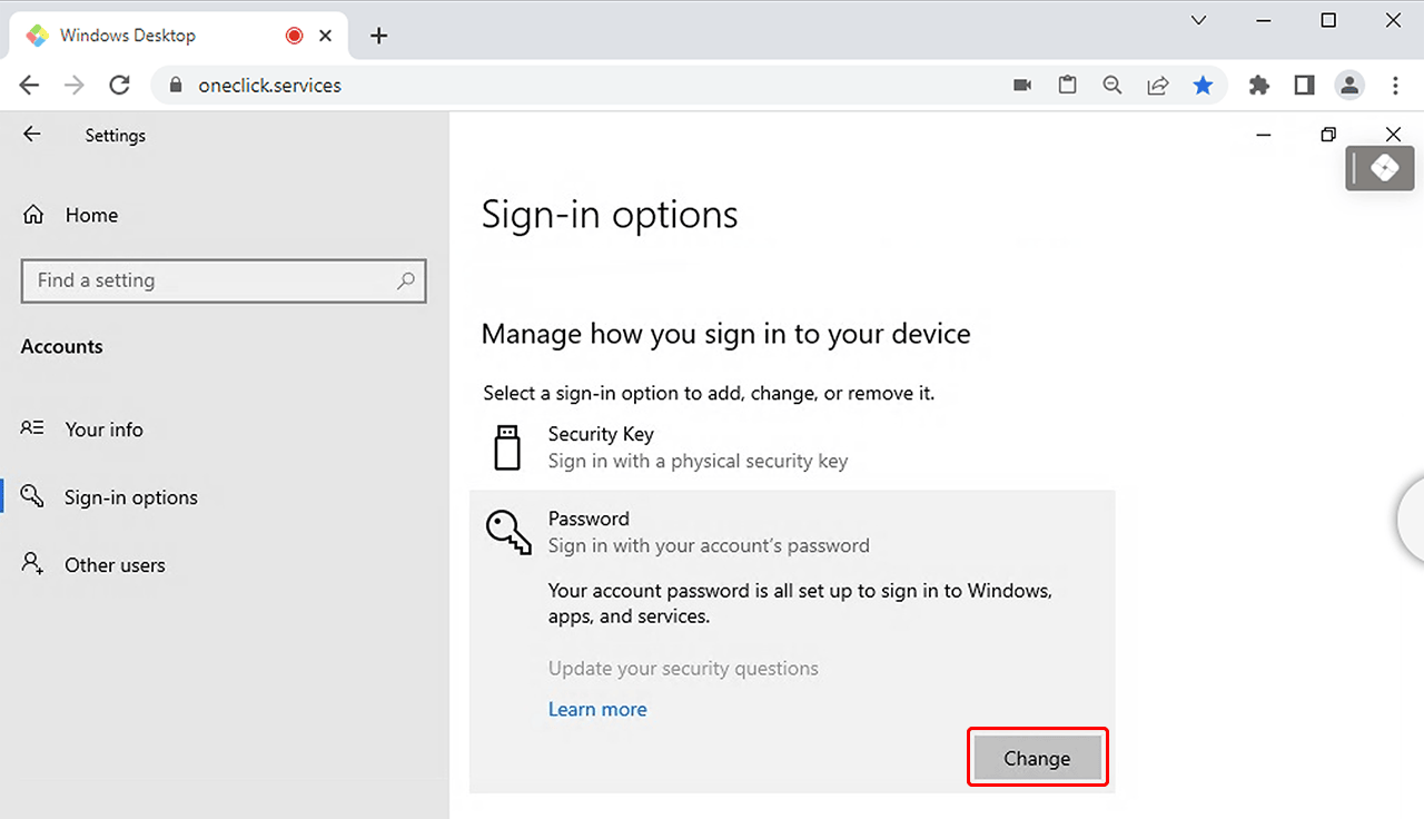 - Wählen Sie unter Kennwort die Schaltfläche Ändern aus.