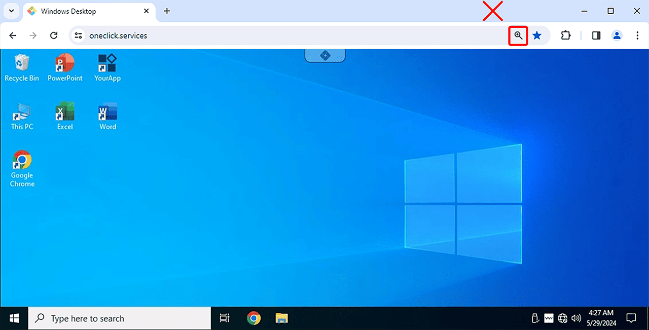 - Vergewissern Sie sich zunächst, dass der Browser-Zoom für alle hinzuzufügenden Monitore auf 100 % gestellt ist und dass alle Seitenleisten ausgeblendet sind. Überprüfen Sie die Adressleiste oben rechts neben der URL. Wenn dort kein Lupensymbol zu sehen ist, ist der Browser-Zoom bereits auf 100 % eingestellt und Sie müssen nichts weiter tun.