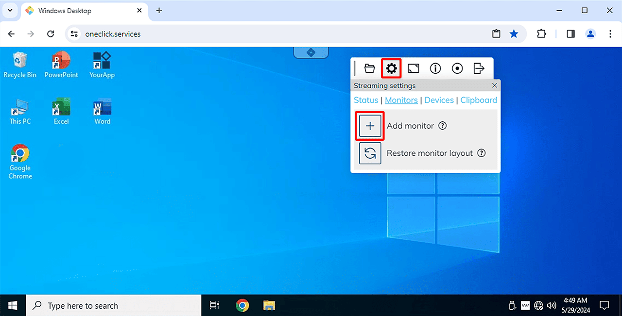 Möchten Sie eine oneclick™ App, z.B. einen Remote Desktop über mehrere Monitore nutzen, muss in Ihrer App-Lizenz das Add-On „Multi-Monitor“ aktiv sein. Wenden Sie sich hierfür an Ihren Administrator.