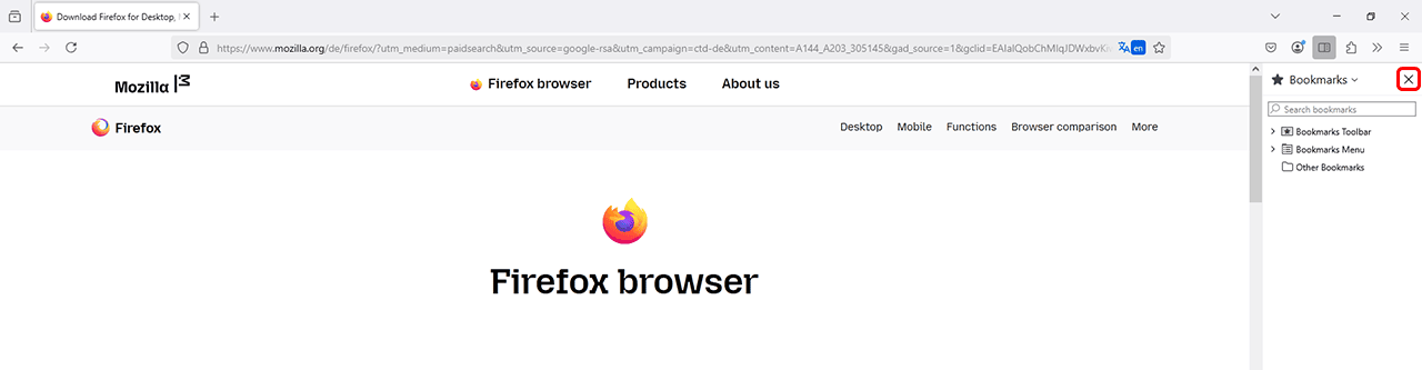 Um die Seitenleiste in Firefox zu schließen, klicken Sie einfach auf das X-Symbol in der oberen Ecke der Seitenleiste.