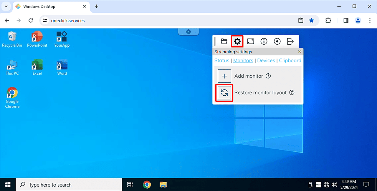 - Erlauben Sie das „Positionieren der Bildschirme“. Dadurch ermöglichen Sie, dass sich die oneclick™ Monitore beim Wiederherstellen des Layouts an der letzten bekannten Position und mit der vorher festgelegten Größe öffnen.