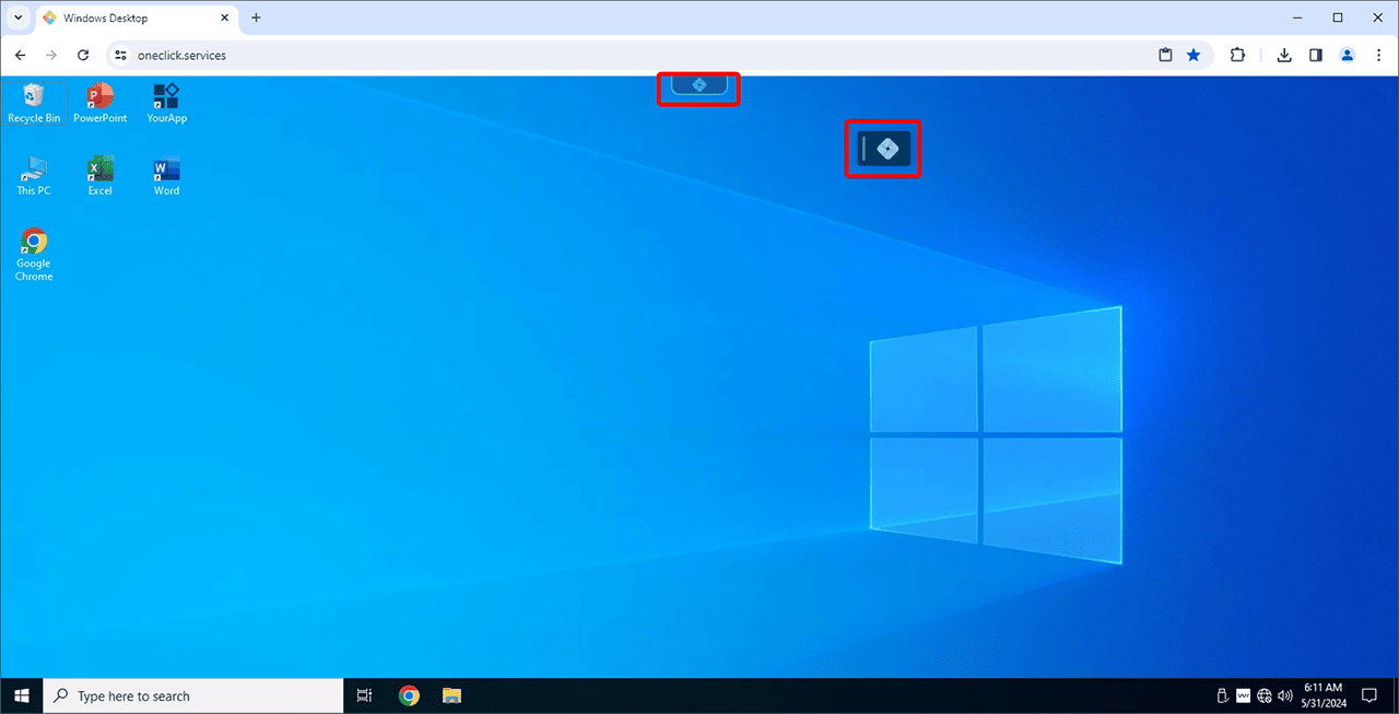 - In the open app, you will see the oneclick™ icon at the top of the screen on the desktop. If you click on this icon, the oneclick™ menu opens.