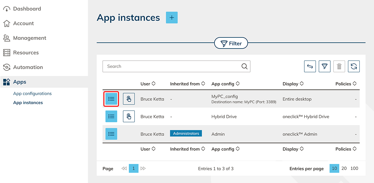 - Click on the Apps tab in the oneclick™ menu and then click App instances.