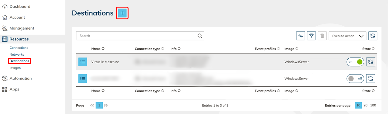 You can tell that the virtual machines have been created by the on/off switch that appears on the right in the destination‘s row.