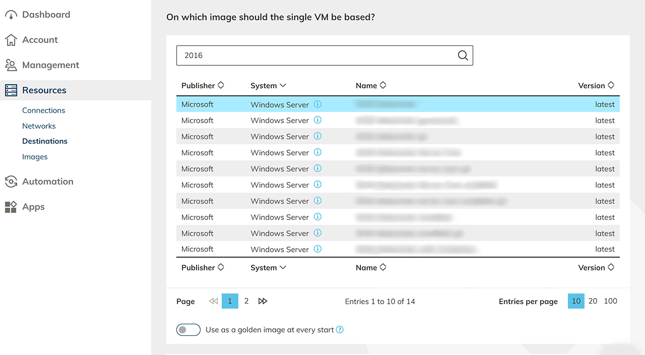 - Which instances can be selected depends on your subscription, the selected location and a previously selected image.