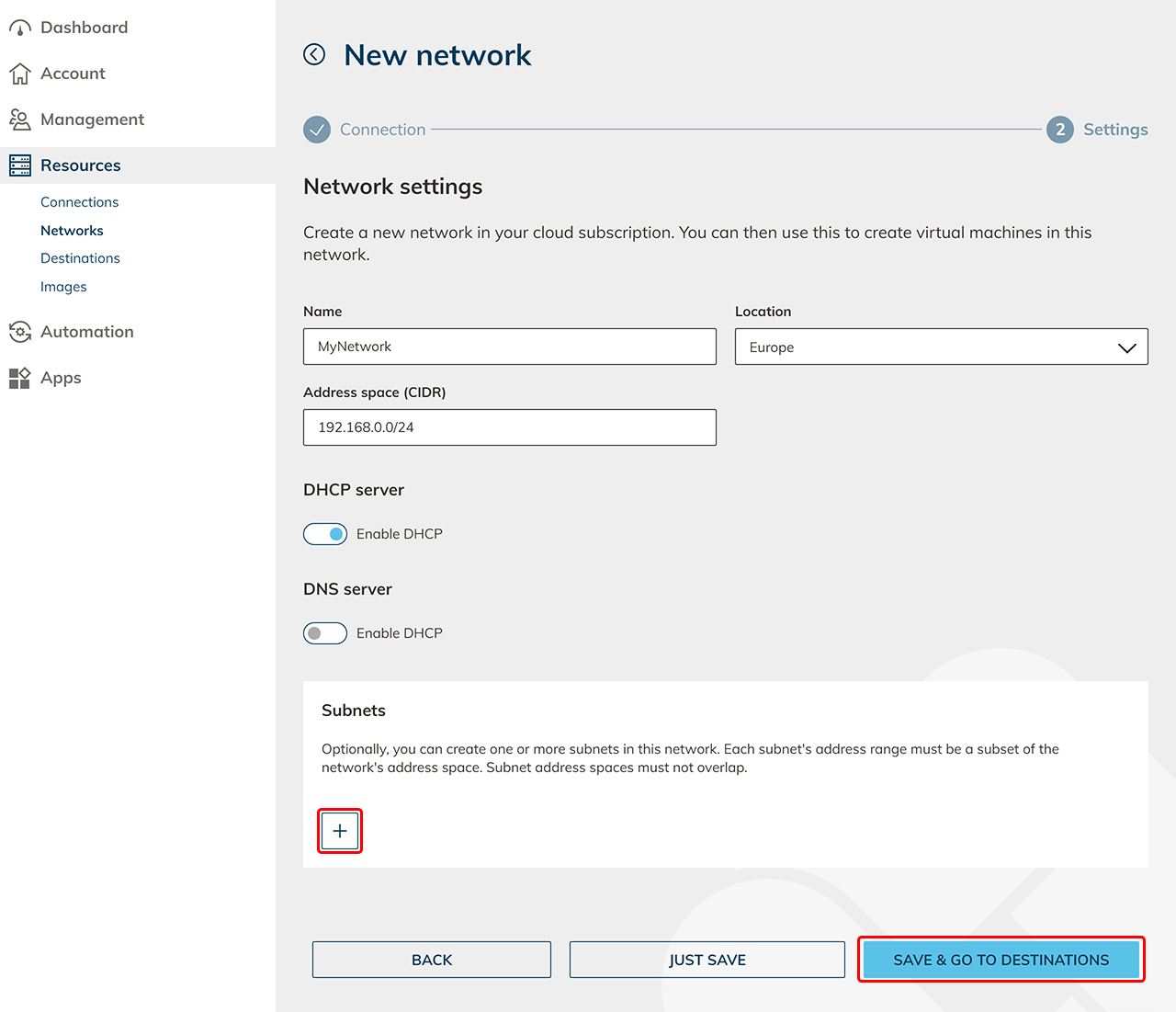 - Optionally, you can create subnets with some cloud providers.