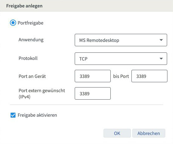 If multiple devices should be connected, configure a separate port forwarding rule for each device. Use different external ports (see Step 3.6).