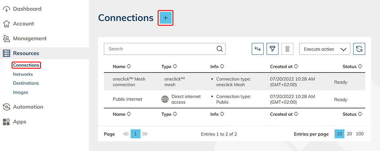 Click on the + Icon to create a connection to oneclick™.