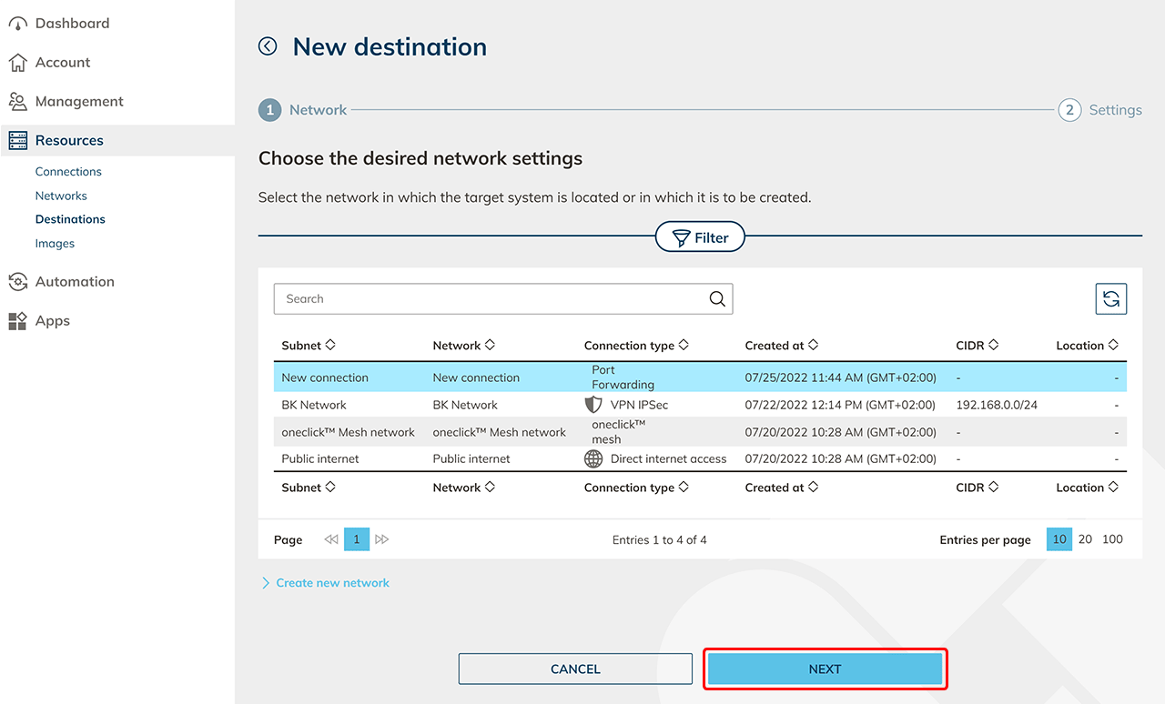 Create destination pools Next, create a destination pool in which you can include one or more destinations that belong together. This step is not necessary if you want to connect an internal website or a private Active Directory.