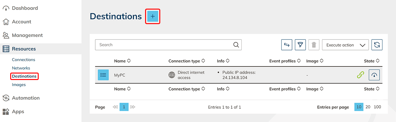 Next, create a destination pool in which you can include one or more destinations that belong together. This step is not necessary if you want to connect an internal website or a private Active Directory.