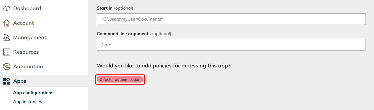 - Optionally, you can enable the system to keep the login data in an app instance or on the desk tile when switching the destination. This prevents the data from being deleted from the fields when switching.