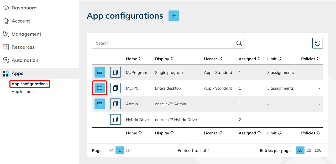 To be able to make the following settings, you must already have created a user license, a user, an app license, cloud resources or on-premises resources you want to connect to, and an app configuration.