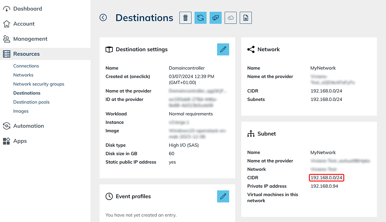 - You can find the CIDR range on the details page of your domain controller.