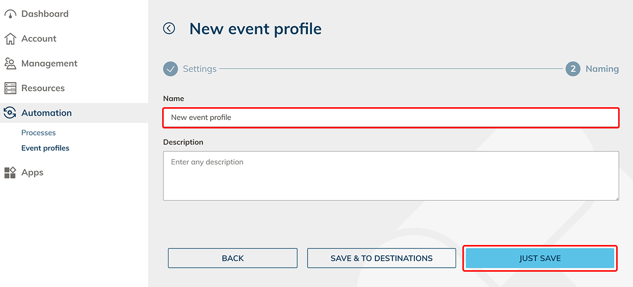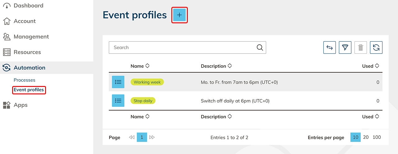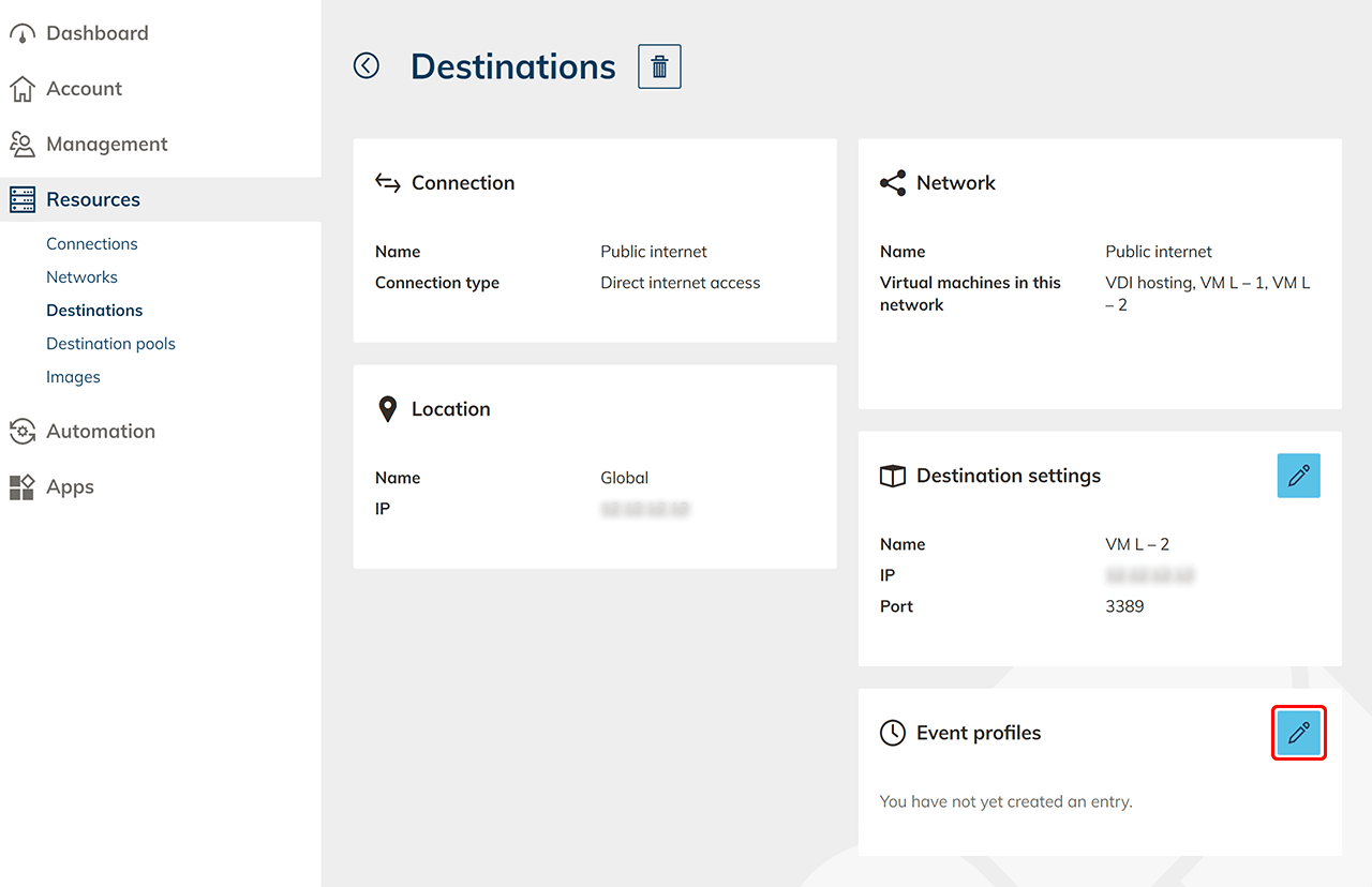 - In the details menu, click the Pencil icon on the "Event profiles" tile.