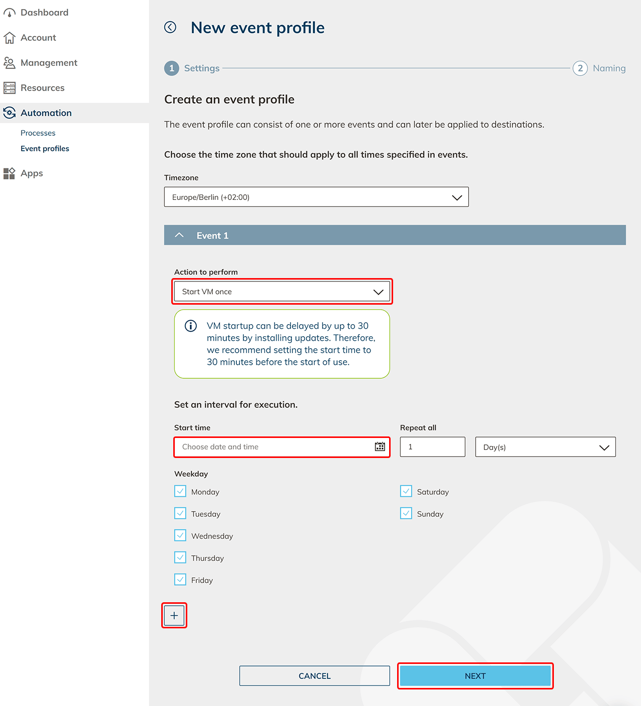 To avoid unexpected costs, we recommend you to always specify a time to stop the virtual machine. This prevents a virtual machine from running during a vacation, for example.