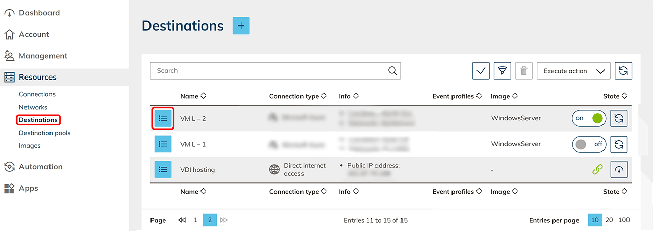 - Click the List icon in the row of the machine which you want to apply the event to.