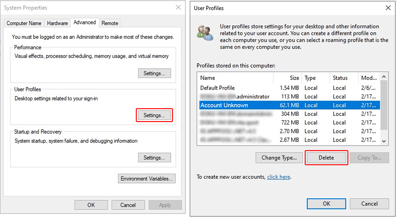 Control Panel → System → Advanced System Settings - Go to the "Advanced" tab and navigate to the "User Profiles" section, then click on "Settings".